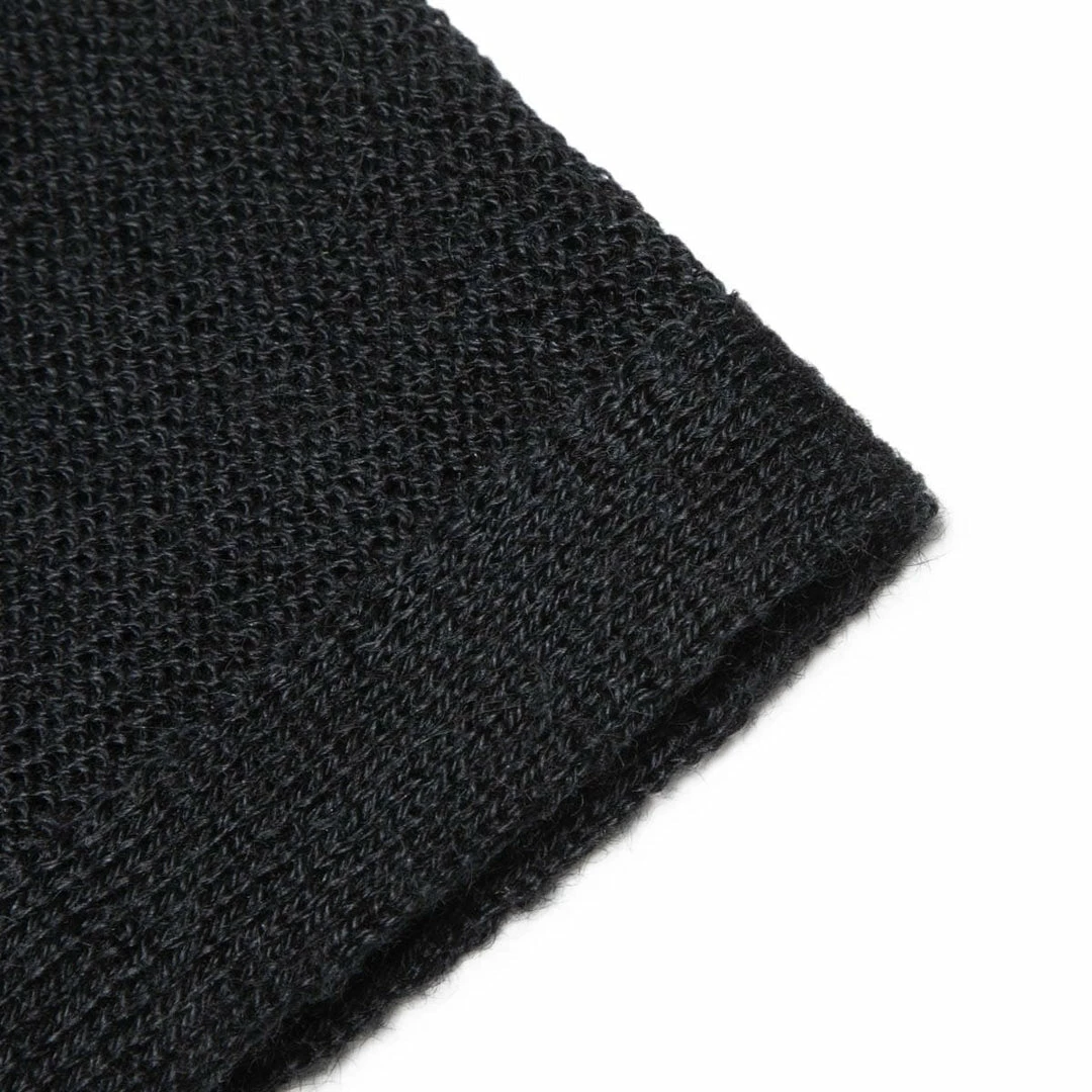 Fully fashioned hand gaiters in a lightweight Cashllama wool and silk blend knit construction. HG1’s unique ‘wrap’ pattern is made from a single engineered knit panel which ergonomically spirals around the hand. The length of the glove can be regulated by doubling or unfurling the cuff. Can also be worn ‘wristband style’ by folding and flattening the thumb anchor inwards.