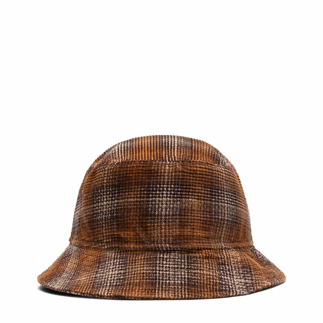 The Cord Bucket Hat is made of eight wale cotton corduroy, meaning the ridges in the fabric are of a wide thickness, and finished with a woven Square Label on the front.ย