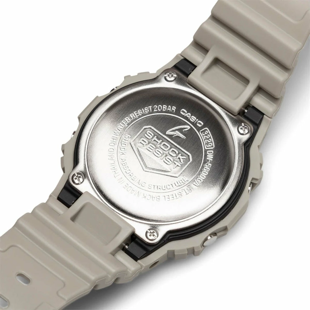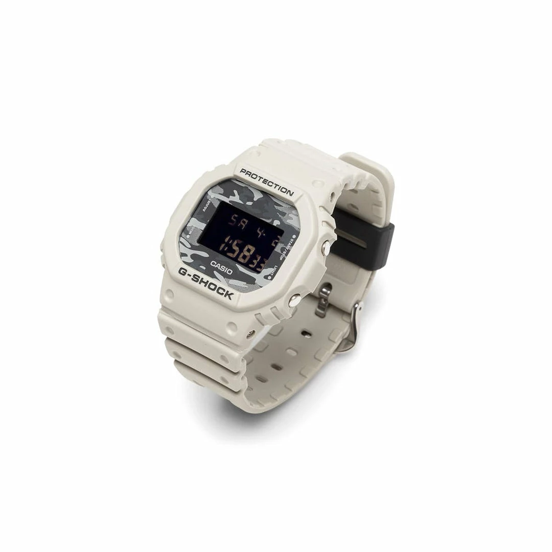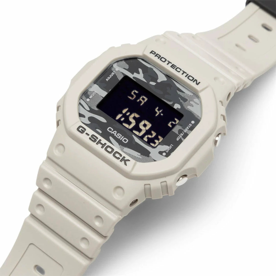 The DW5600CA-8 is a watch that goes with you all the way from the wild outdoors to the inner city, in just-right colors that fit in anywhere. Featuring an original G-SHOCK camouflage motif on the dial.