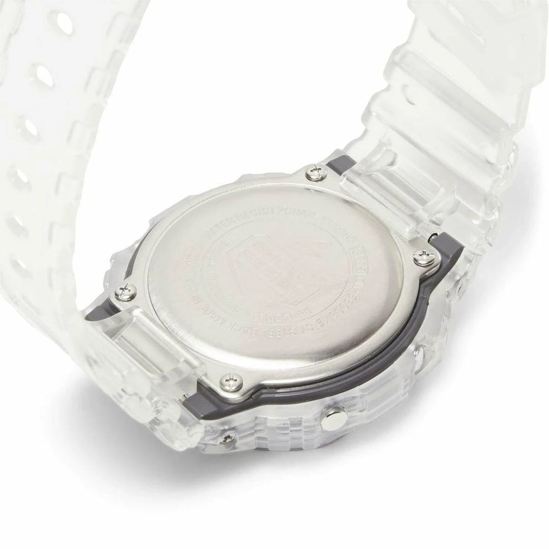The digital standard square DW5600SKE-7 of the new TRANSPARENT PACK Series timepieces are created using semi-transparent resin parts. Everything about this white-based model makes it the perfect choice as an attractive fashion item.