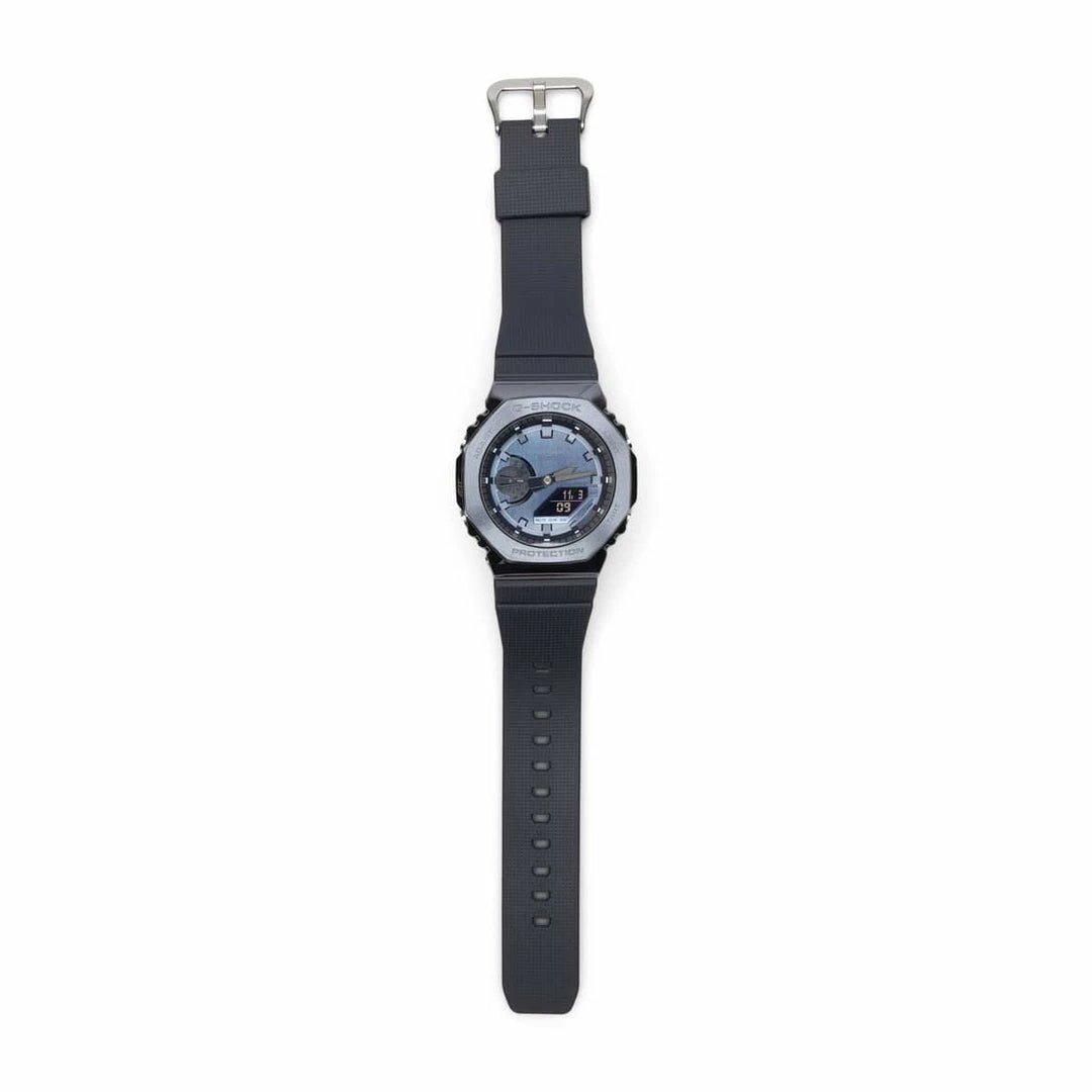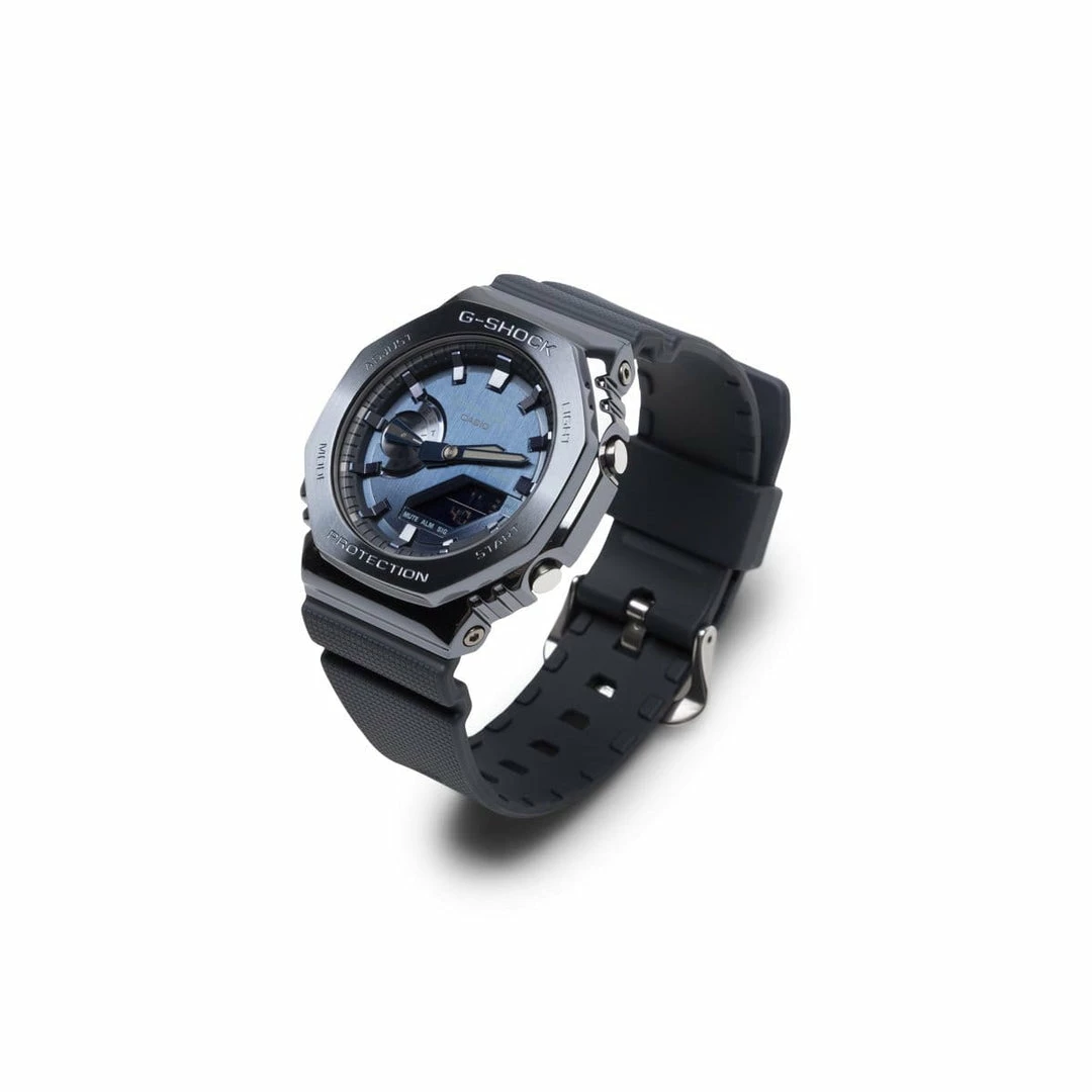 Go sleek, sharp and bold with the new blue band and dark gray IP bezel GM2100N-2A in a metal-clad octagonal take on the original iconic design.