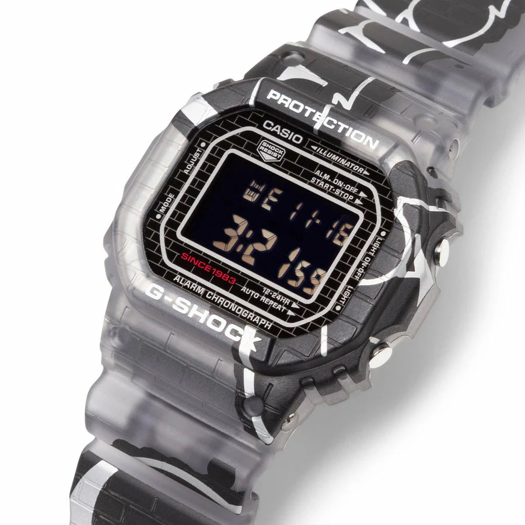 Splashed boldly across the bezel and band, these street-savvy designs on the DW5000SS-1 G-Shock deliver original graffiti art that crushes in any fashion scene.