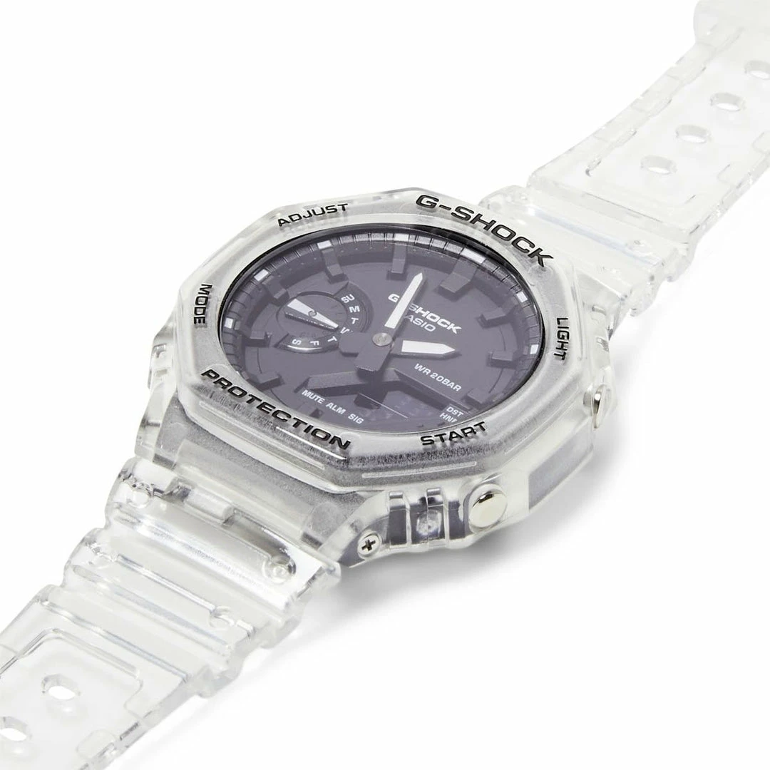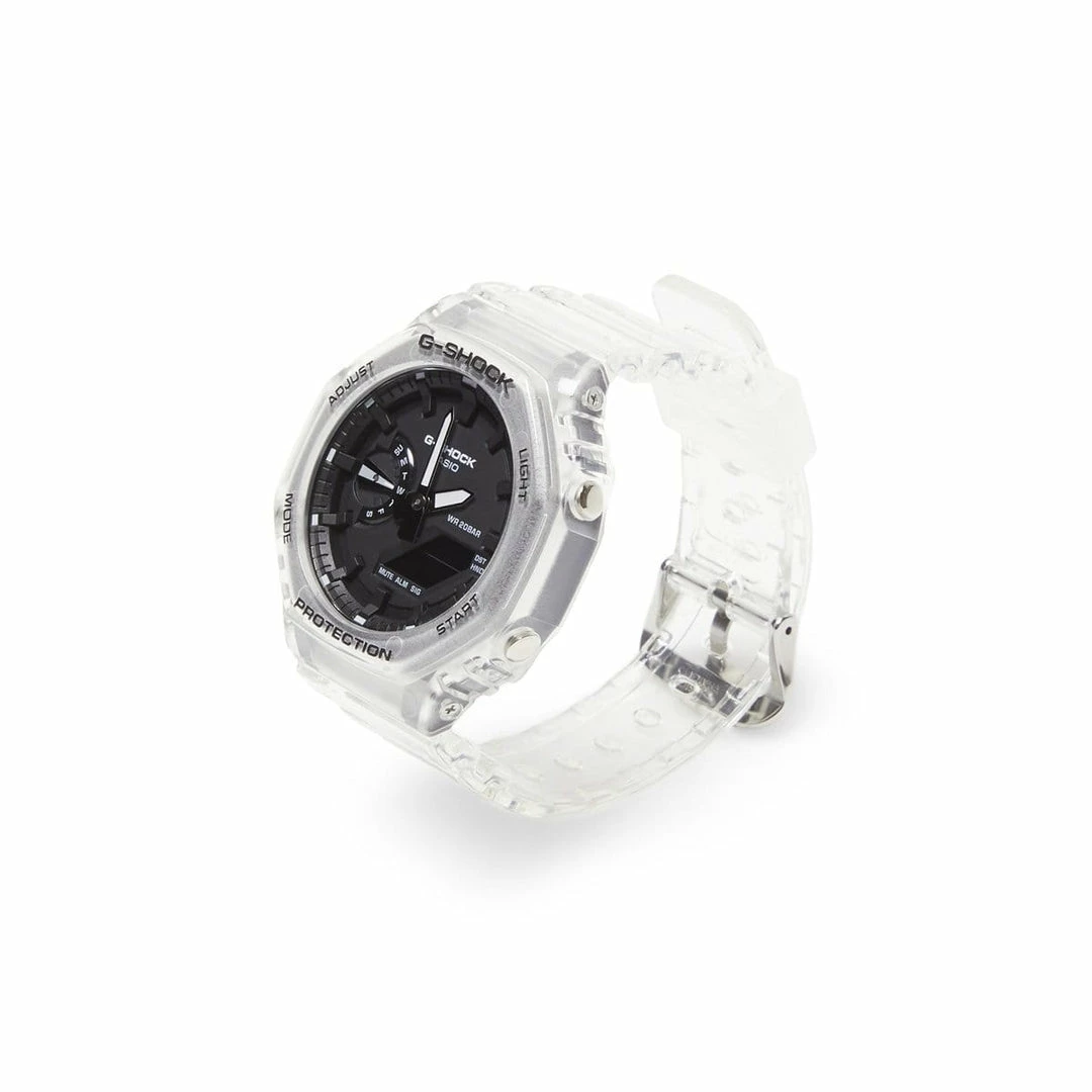 The digital-analog GA2100SKE-7A of the new TRANSPARENT PACK Series timepieces are created using semi-transparent resin parts. Everything about this white-based model makes it the perfect choice as an attractive fashion item.