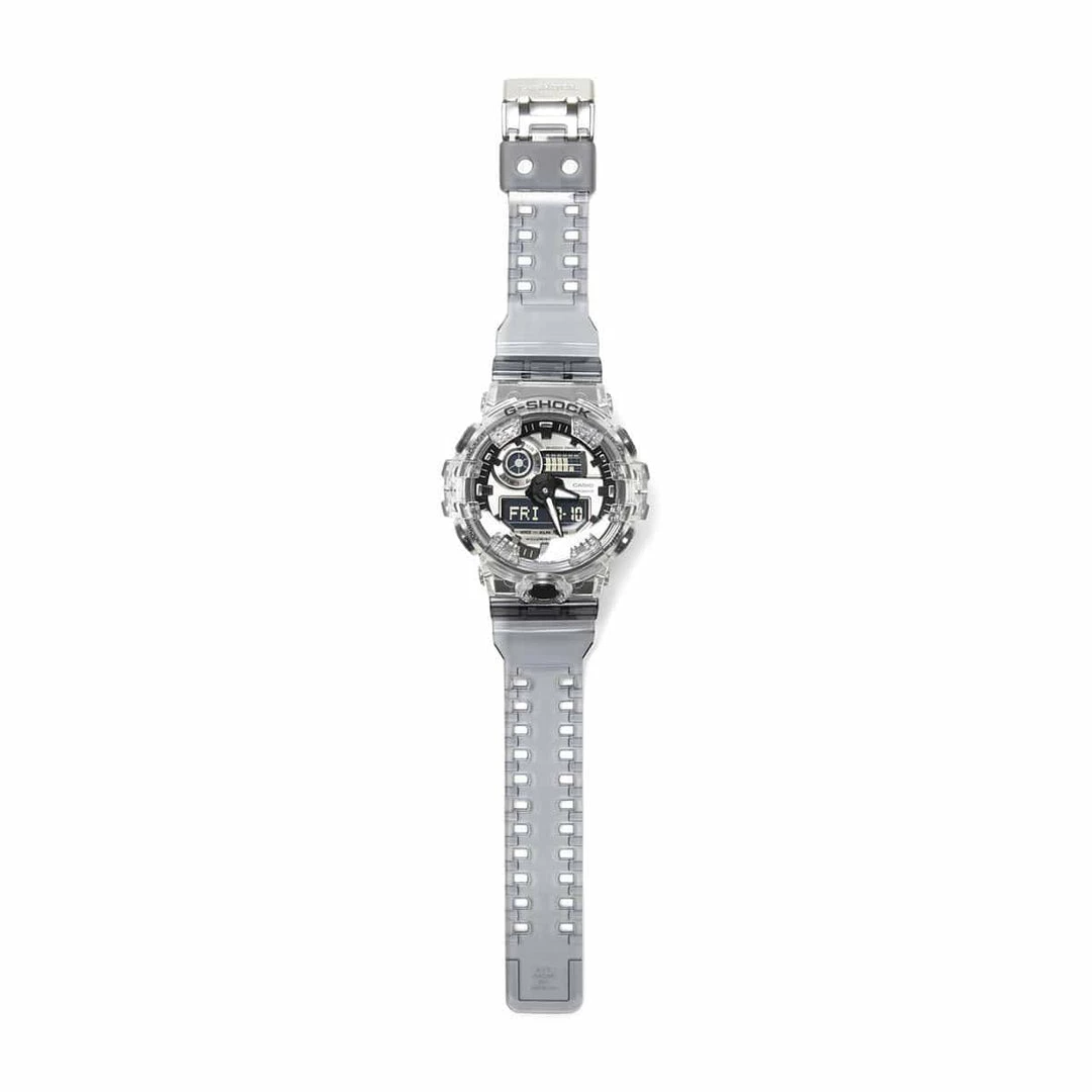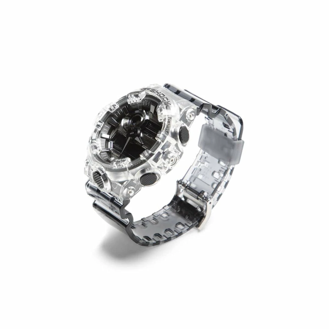 This new model combines popular semi-transparent resin with metallic colors to create a mix that captures the look of the 80’s along with today’s fashions. Base model is the dynamic style GA-700. This model features two-tone coloring that matches bright hues with semi-transparent resin for the case and band.