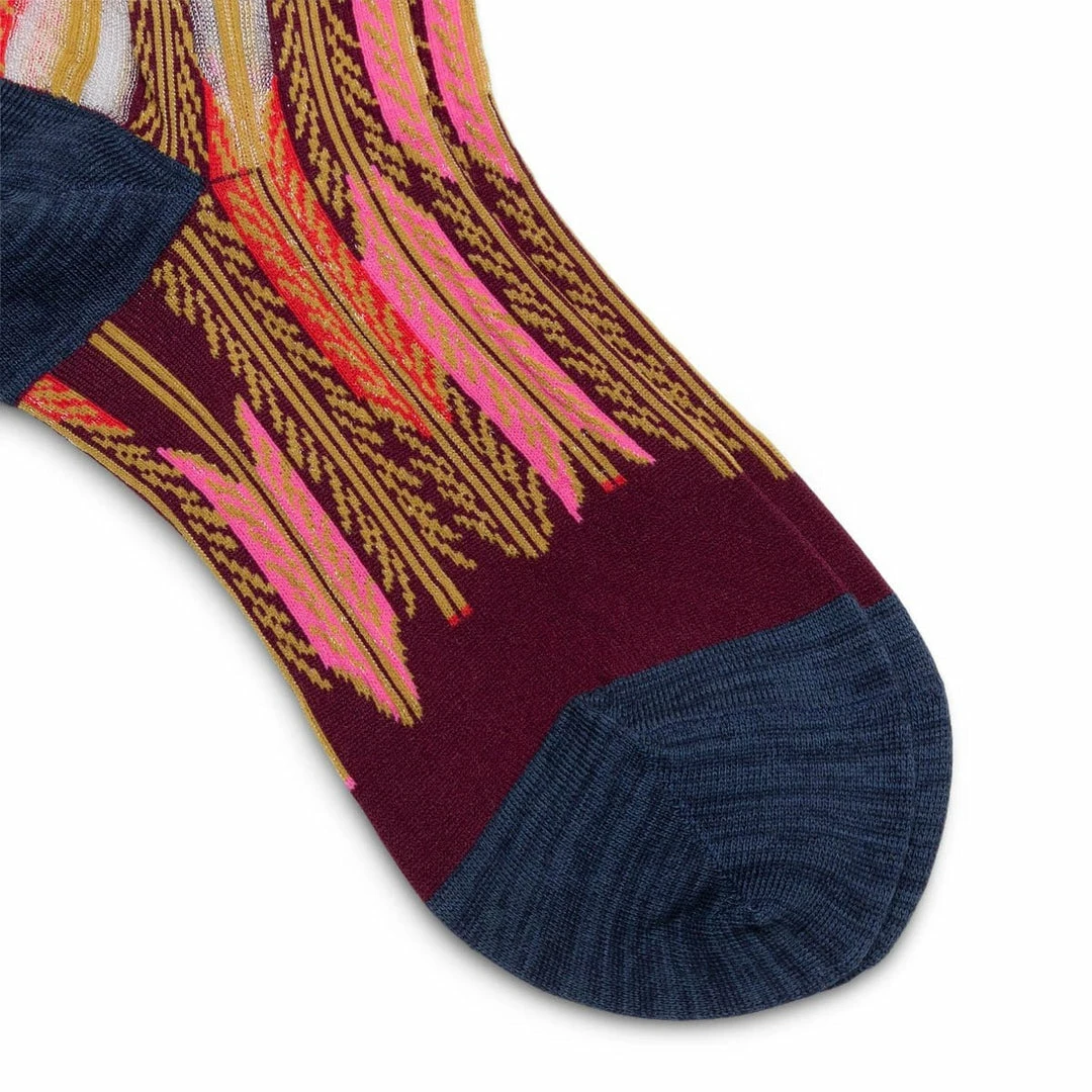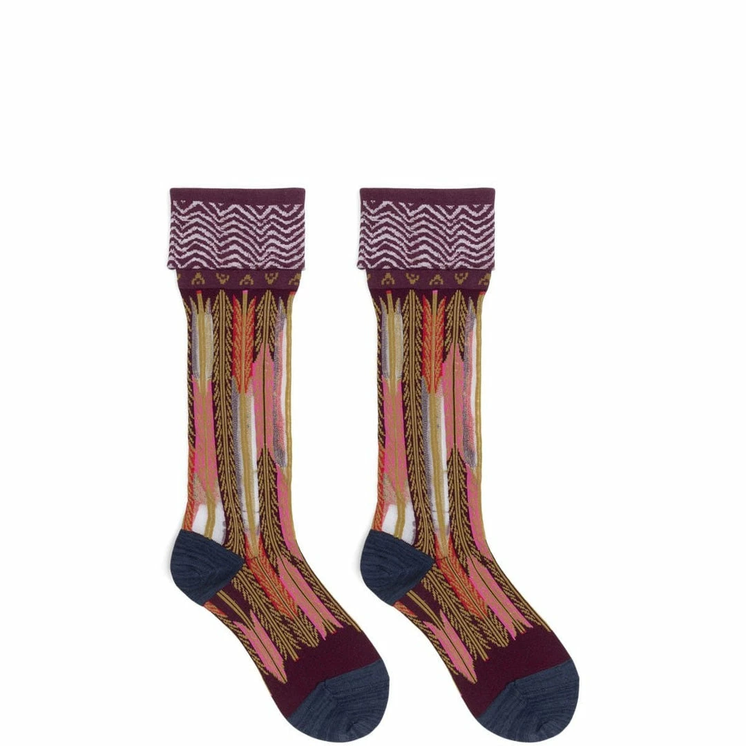 See-through socks with arrow feather motifs arranged like a herringbone pattern. Colorful socks that are perfect for coordinating accents.