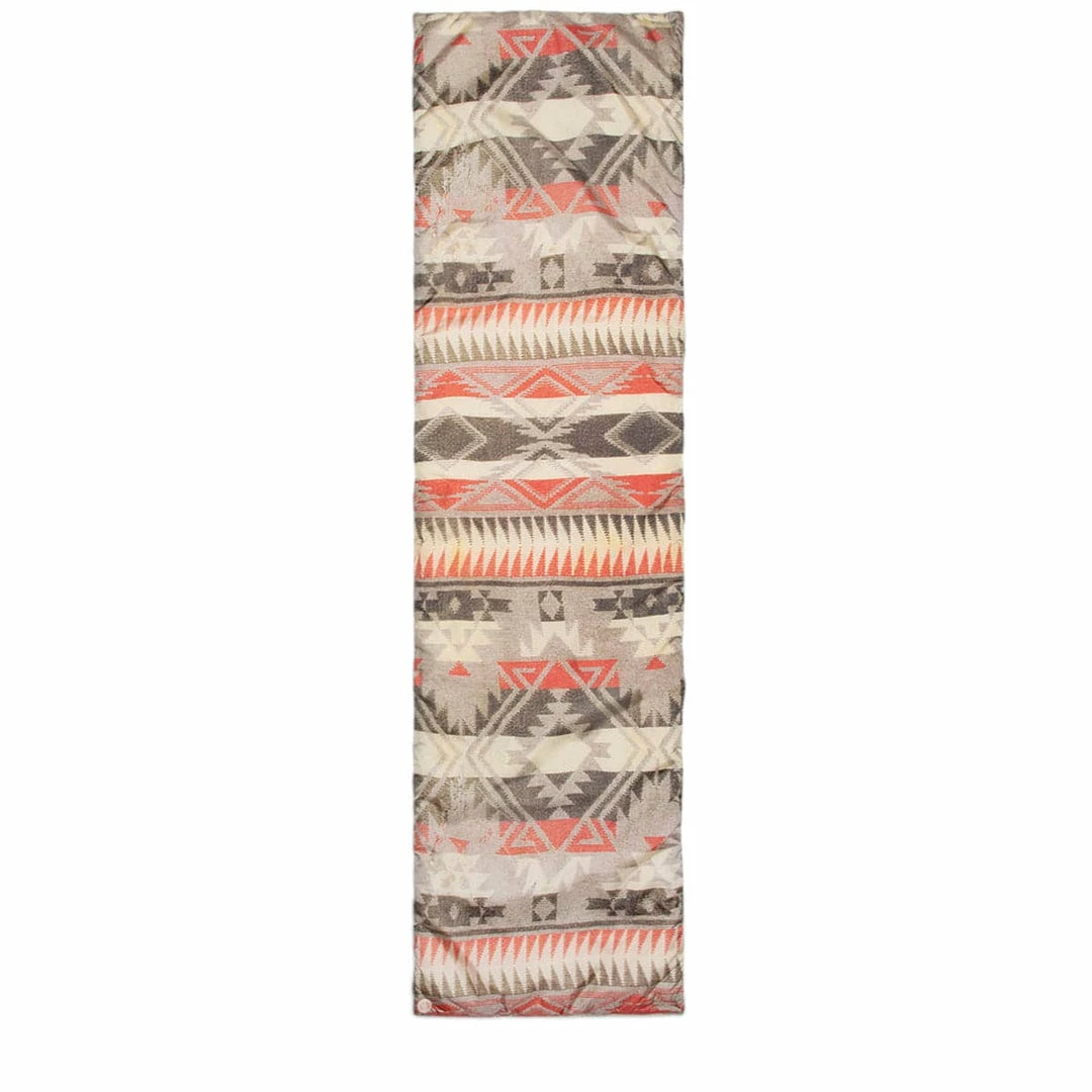 Somewhere between hood and scarf, this print scarf is a versatile cold weather accessory. The nylon lining keeps the down dry, while keeping warm.