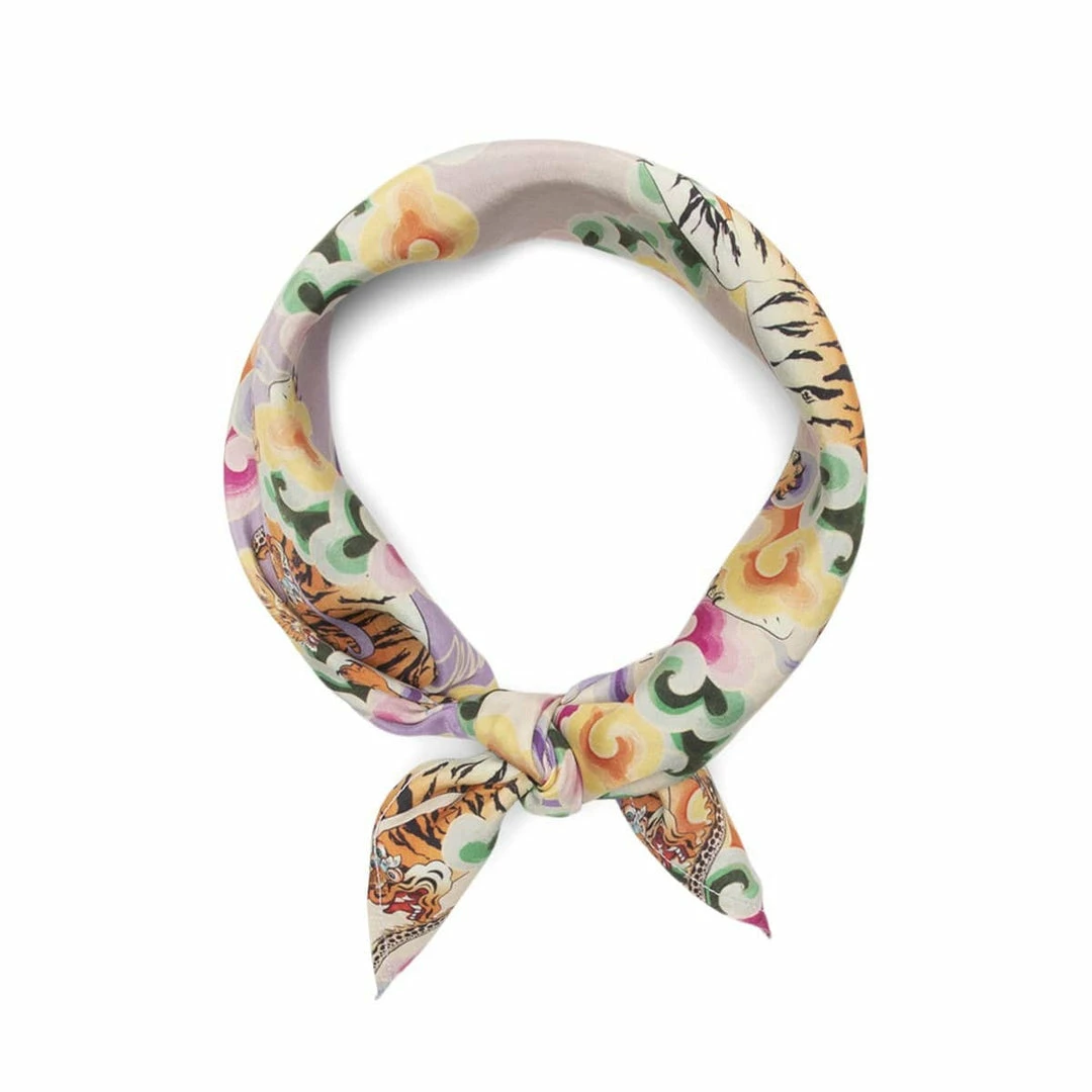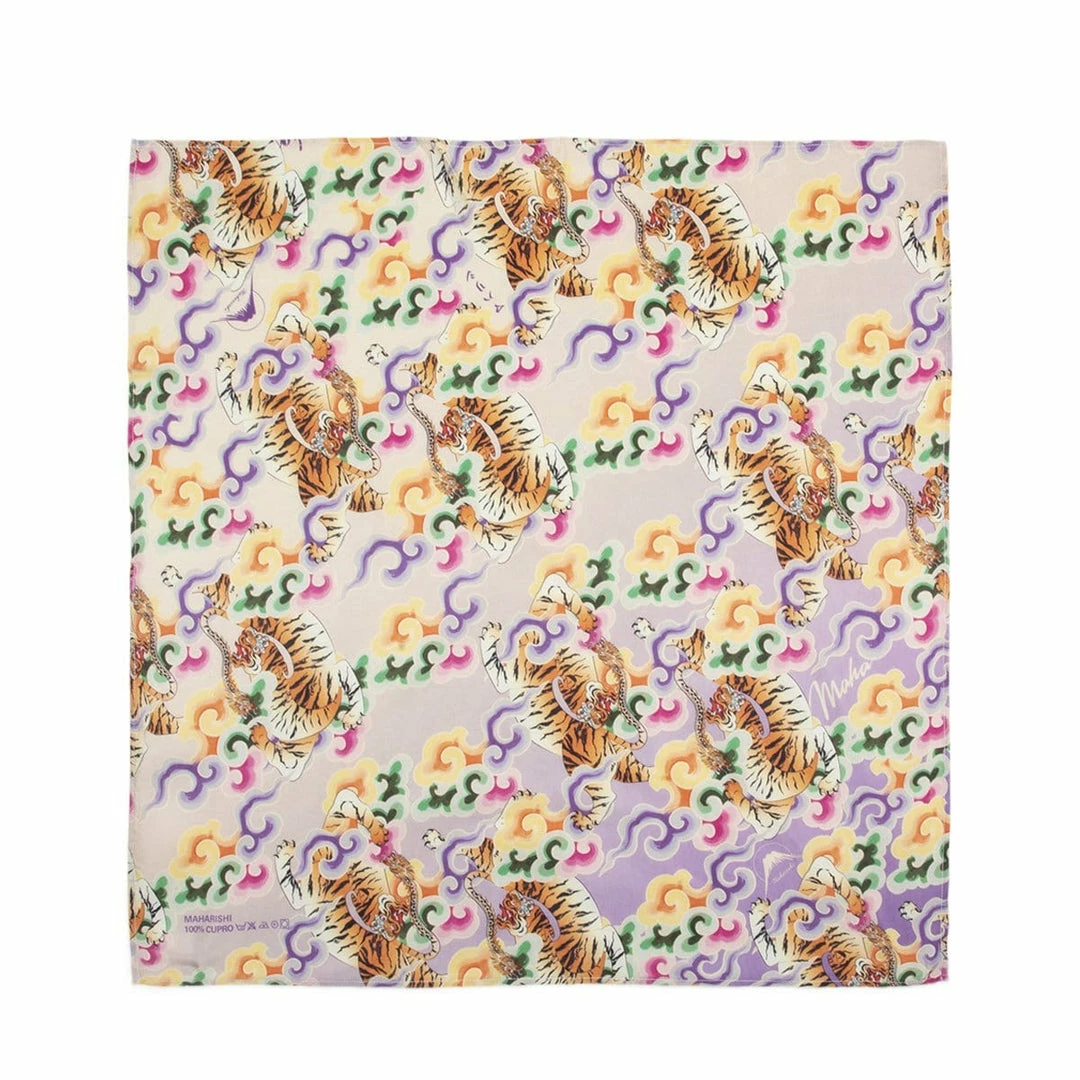 ο»ΏThis bandana is made from an eco-friendly cupro twill – a byproduct from cotton manufacturing that has been woven in Japan that has a soft, silk-like handle. The scarf features an all-over Tibetan cloud print by master calligrapher Tashi Mannox.