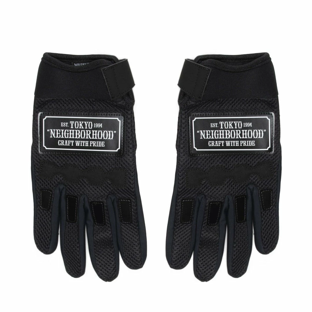 Racing gloves with double russell mesh polyester that provides breathability and padding on the back and synthetic leather on the palms for enhanced grip. Neoprene tab with embossed logo on wrist.Β