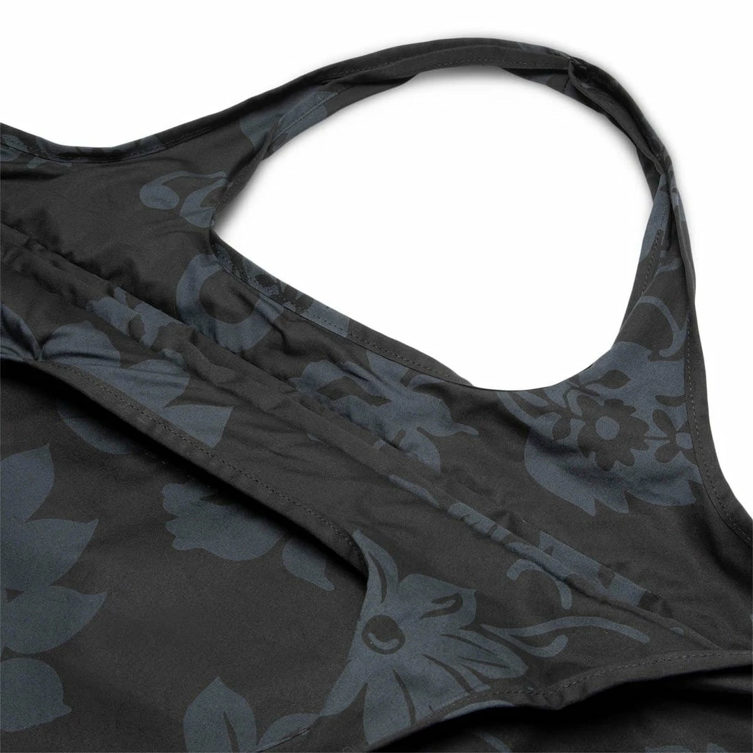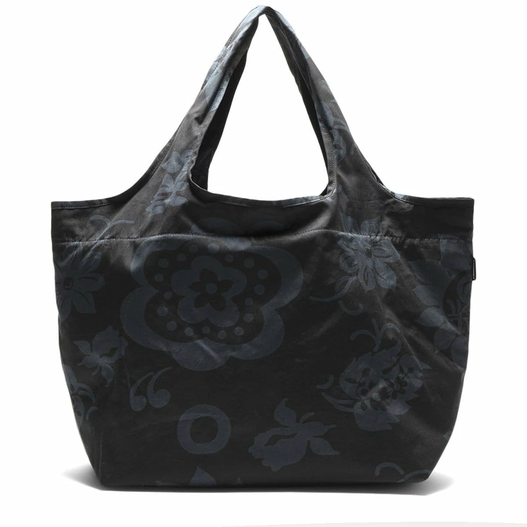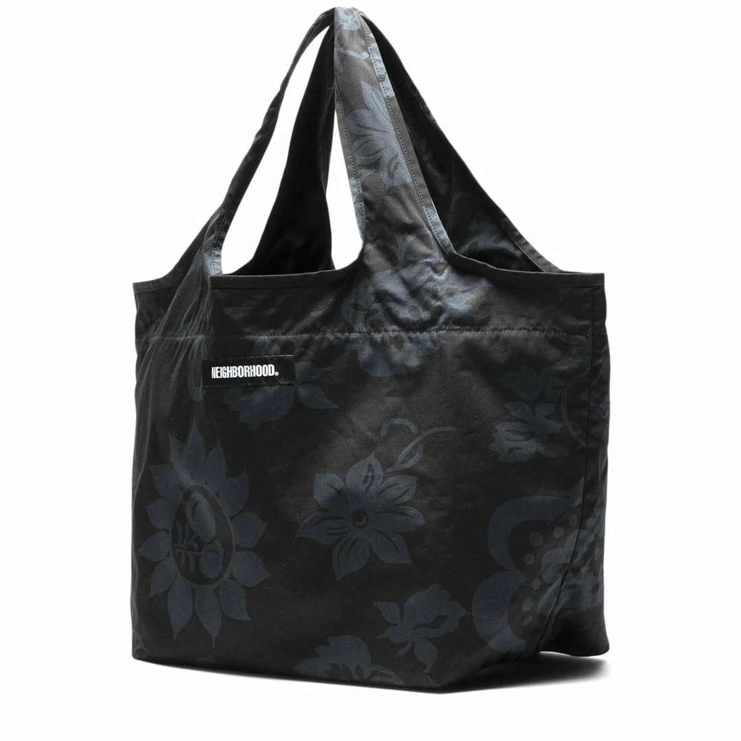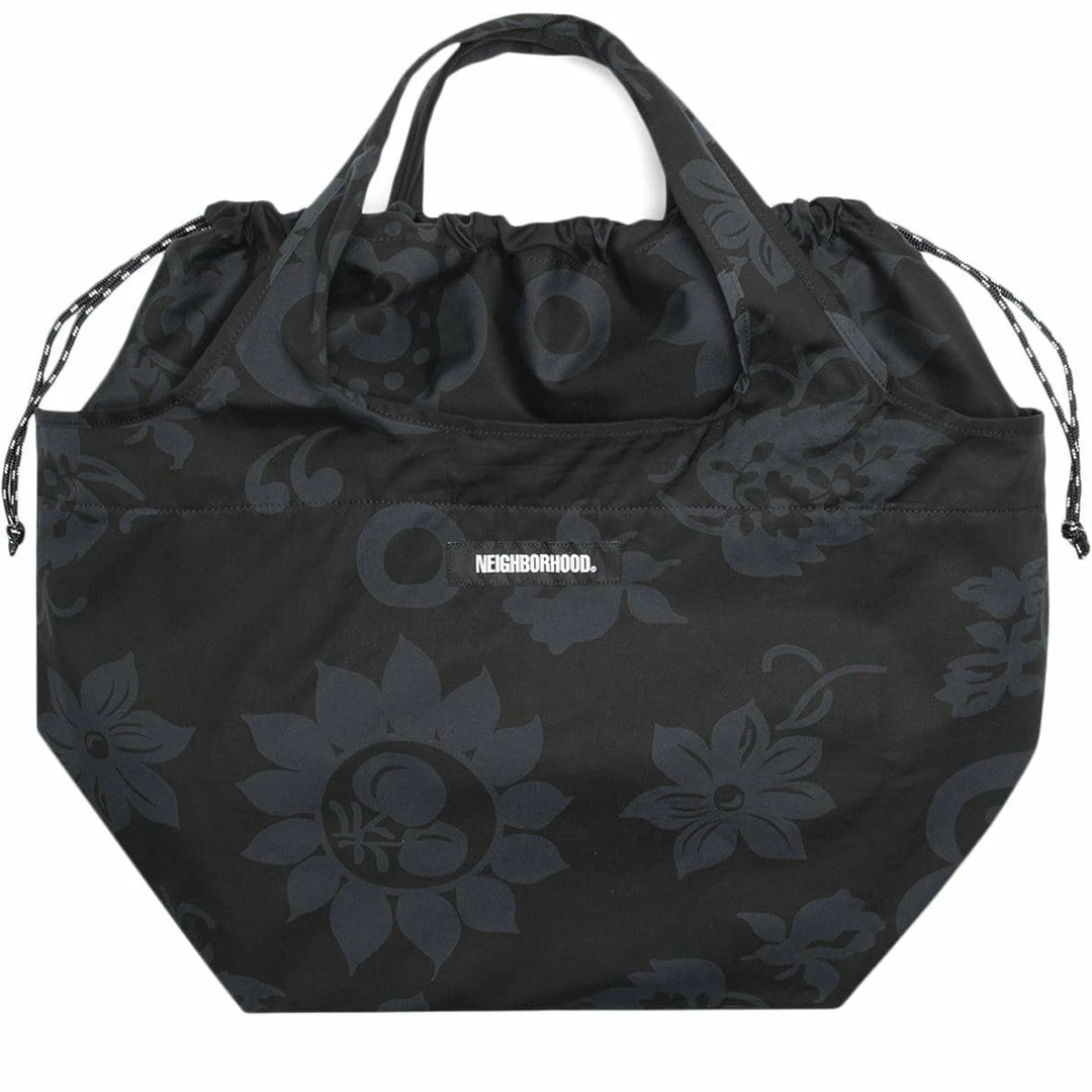 Cotton weather cloth tote bag with flower pattern. Drawstring closure keeps your valuables inside the bag and protected. Brand label placed at center.
