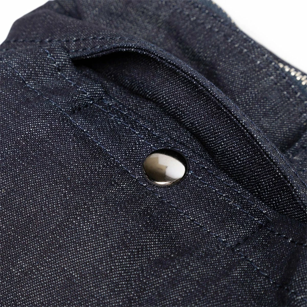 The denim we use is a 9 oz original nepp denim weaved in low tension. Vertical yarn uses indigo 100% dyed uneven yarn, and weft yarn uses 100% organic cotton. By using uneven yarn for the vertical yarn, vintage fabric is reproduced. Organic cotton used for weft yarn is a material that is attracting attention all over the world, with the aim of expanding organic farmland in consideration of environmental pollution.