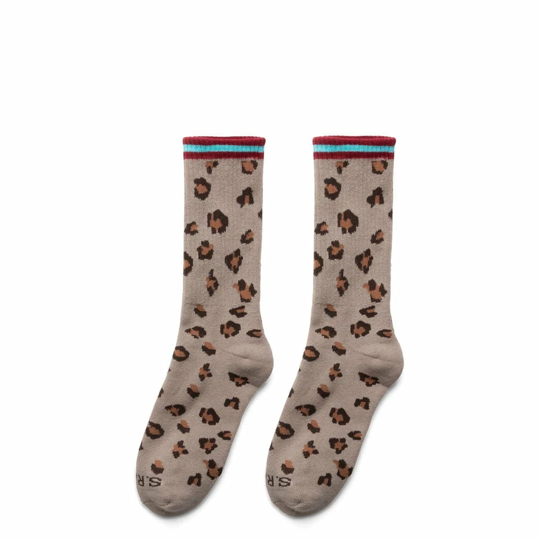 Stray Rats’ Leopard Socks come in an all-over jacqaurd leopard print finished with a striped top and Stray Rats text at the bottom toe.