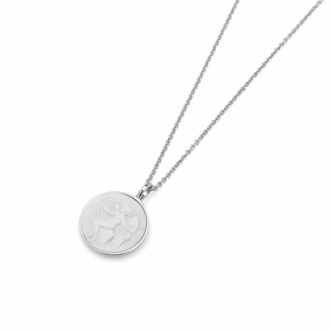 The Eros pendant is an exclusive and unique piece made in the Southern part of Italy, famous for their traditional craftsmanship of Cameo carvings made on shells. The necklace is updated with our custom designed lock system. The pendant and the necklace are made of high quality 925 sterling silver, plated with white rhodium to strengthen the surface and prevent tarnishing.