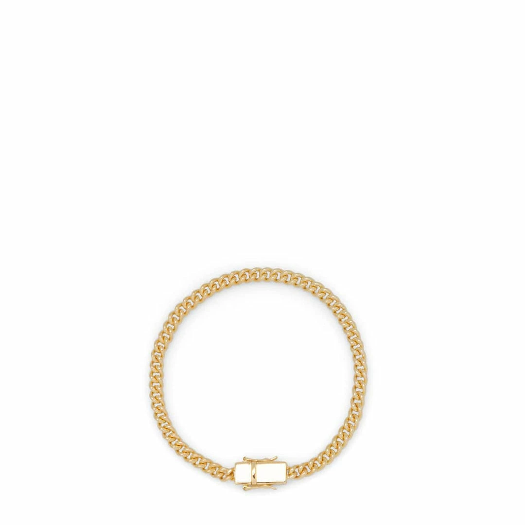 The Rounded Curb Bracelet Thin Gold is a bold curb, designed with our custom made Tom Wood lock. The bracelet is made of high quality 925 sterling silver, plated with 9K gold. All Tom Wood bracelets are classic and modern unisex styles, easy to wear as a single statement piece or to be combined with other bracelets from our collections