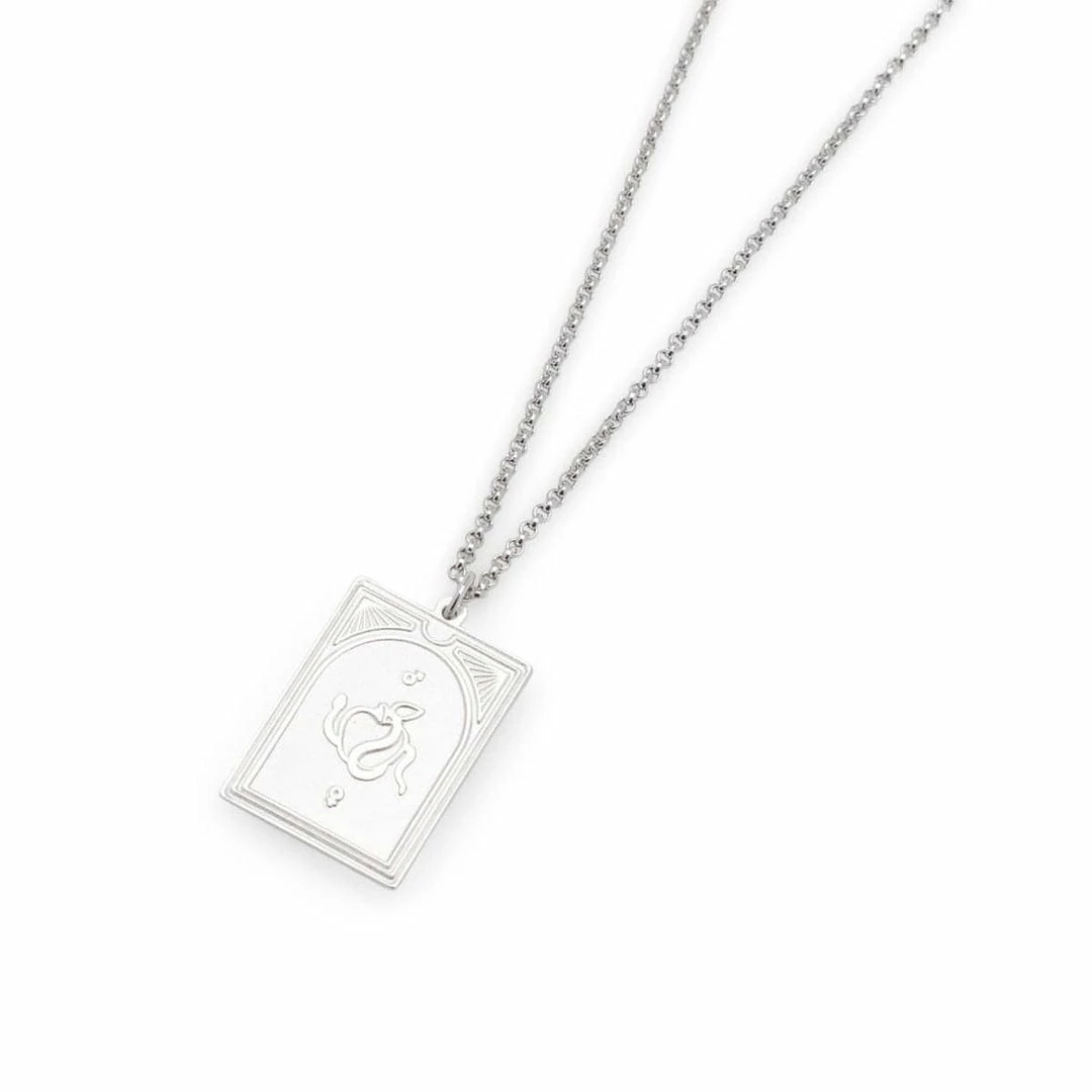The Tarot Lovers Pendant is a mini dog-tag necklace with a modernized and simplified tarot card. The necklace is made of high quality 925 sterling silver and comes with a delicate 21.5” rolo chain including our branded logo tag.