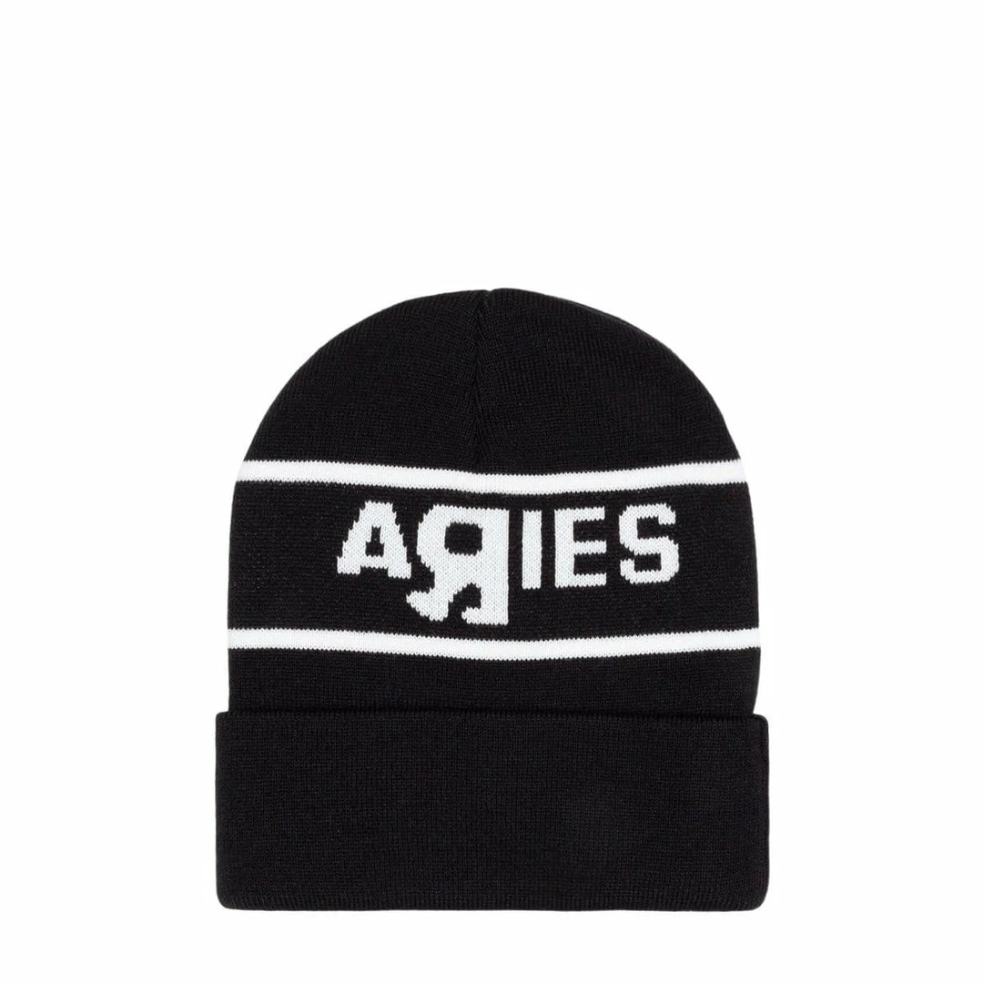 Rib knit beanie with fold-over cuff with jacquard Aries GYOW and Vans logos.Β